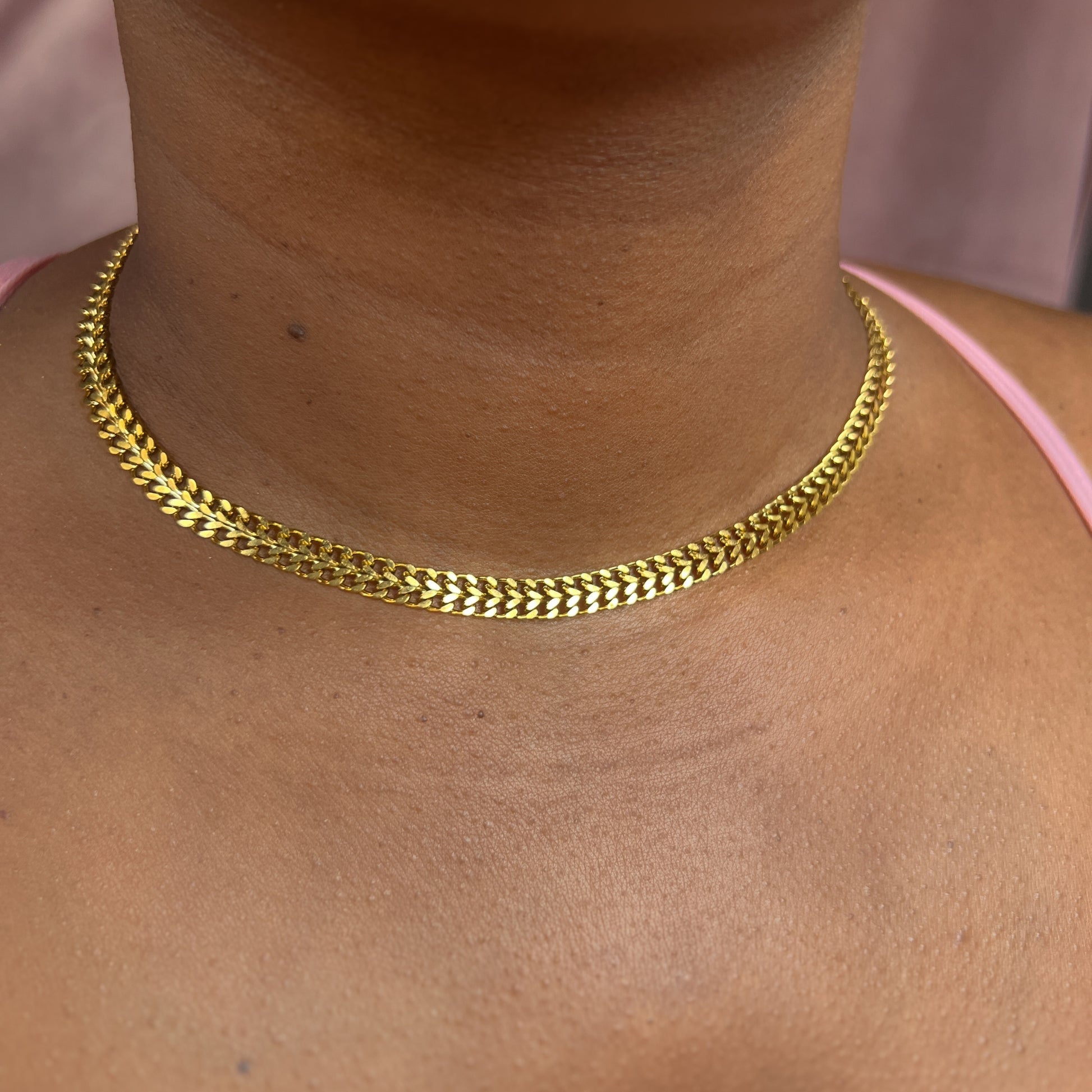 Meet the Cuban Fuse Necklace — a sleek gold chocker-like chain designed to bring effortless edge to your everyday look. Featuring polished Cuban-style links, this piece delivers the perfect balance of bold and refined.